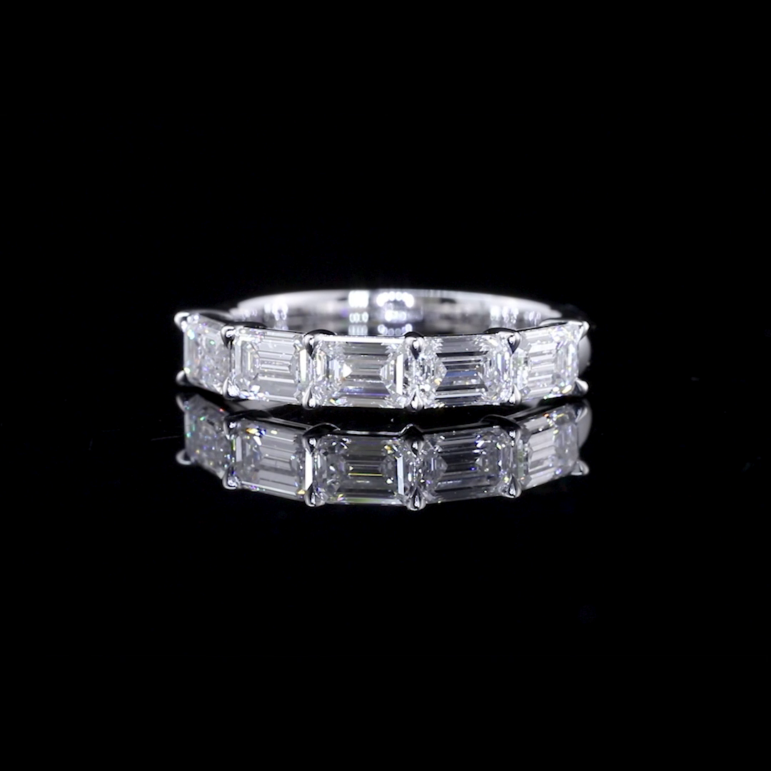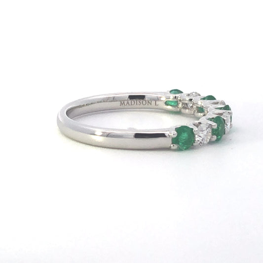 14 Karat White Gold alternating Emerald & Diamond "U" shape ring.